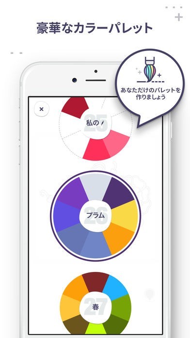 塗り絵に使う色は豊富に揃っており、自分で好きな色を集めてパレットを作ることができます。また、リラックス作用がある音を聞きながら塗り絵を楽しむ機能もあり、塗り絵をするだけで気持ちも癒されるアプリです。