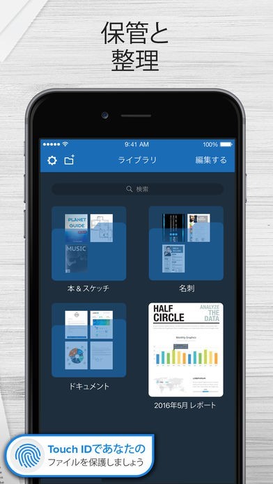 重要な書類はデータ化してスマホで持ち歩るくことができ、便利で仕事に活用しています。指紋認証で大切なデータを守ることもできセキュリティーも万全です。