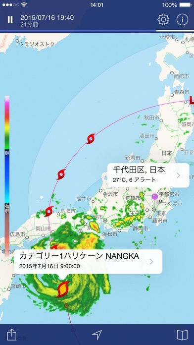 ハリケーンの追跡機能もあるので、今後の進路予測が分かる!