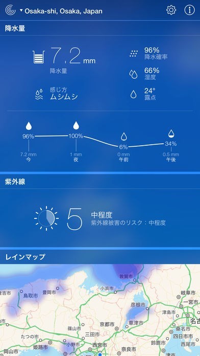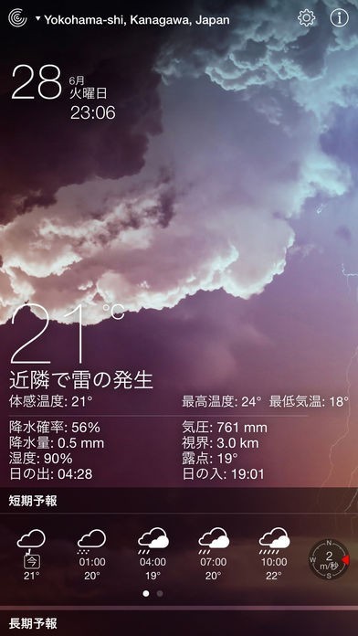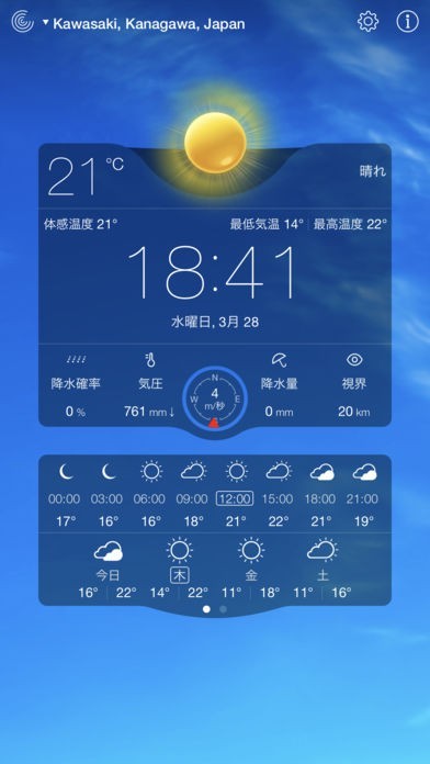 メリット:他のインターネットサイトやアプリよりもグラフィックスが美しくなっており、24時間と1週間の予想気温を見ることができるアプリです。