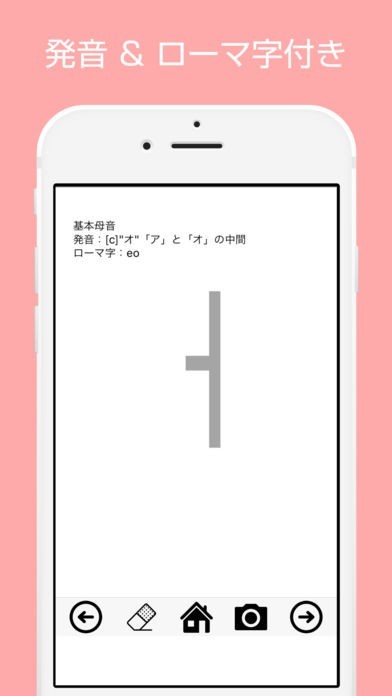 日本語と韓国語は実は共通点が多いんです。そんな韓国語で使われるハングル文字を書いて練習できるのがこのアプリです。何度も書くことで頭の中にハングルにどんどん慣れていきましょう。書いていくことでハングルの文字の仕組みがどんどんわかってきて、日本語との共通点も発見できます。ローマ字表記もされているのでその文字がどういった発音なのかも確認可能です。