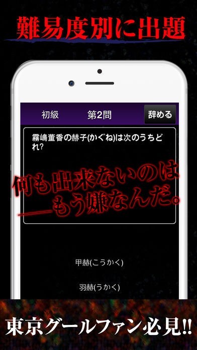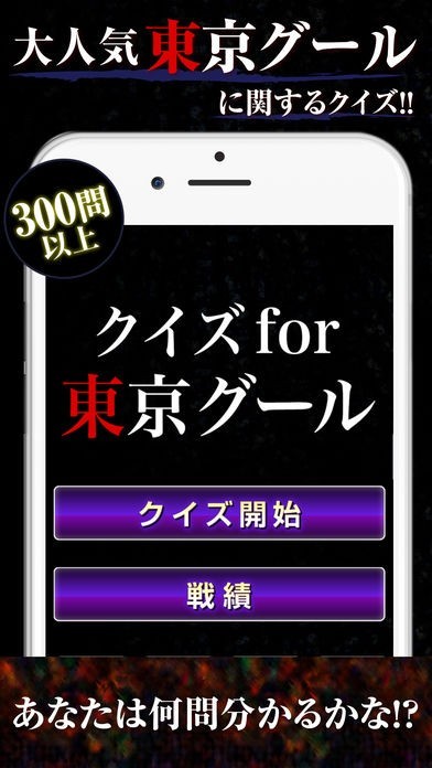 App Storeより引用アニメで大ブレイクした人間とグールの戦いを舞台にした漫画に関するクイズアプリ
