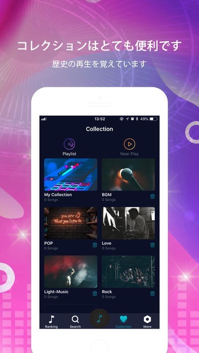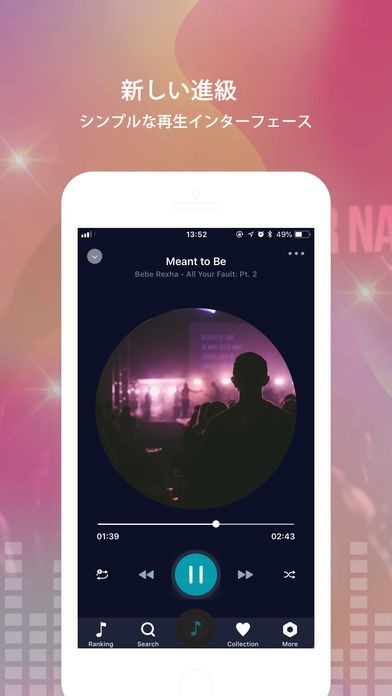 お気に入りリストの音楽をランダム再生したり、1曲のみをリピート再生、全曲ループ再生にも対応しています。バックグラウンド再生も可能なので、BGMとして流すのもオススメです。