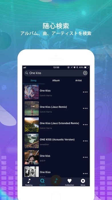 多くの音楽の中から探している音楽を見つけやすいように検索機能が充実しています。アーティスト名、曲名、アルバム名などさまざまな情報から検索をかけることができます。