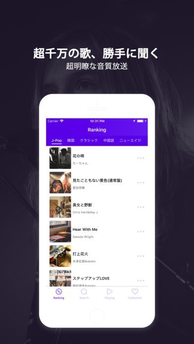 数千万曲収録されているので、自分の聴きたい曲が見つかるアプリです。好きな曲だけを集めてオリジナルのプレイリストを作成することもできます。ランキング機能も搭載されているので、現在流行っている曲をチェックすることも可能です。音楽を再生しながら他の動作ができる、バックグラウンド機能も備わっているので便利です。