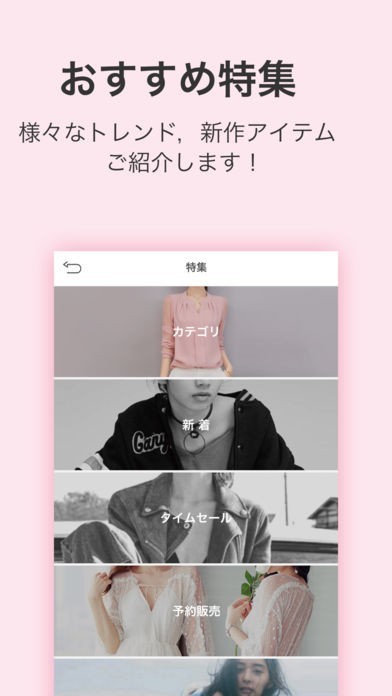 アプリには予約販売のカテゴリがあります。最新アイテムを予約しておくことで、売り切れや買い忘れを防ぐことができます。お気に入りの商品は予約販売を利用して確実に手に入れましょう。