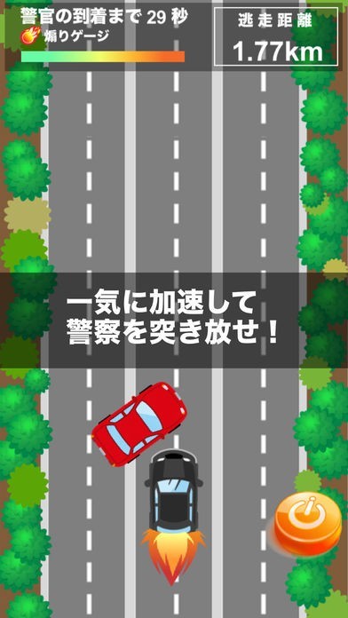 簡単操作でとにかく走り抜いてゆく爽快感のあるカーチェイスゲーム