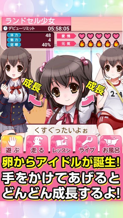 可愛いアイドルの卵を育て上げ、本格デビューを目指すゲームです。走りやレッスン、時にはライブイベントなどもこなしながら、自分の好みのアイドルに育てて行きましょう!