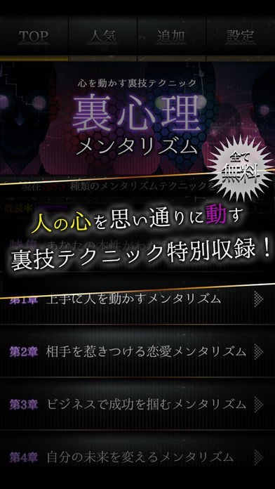 このアプリでは約300種類近くのメンタリズム・裏心理テクを解説〜ご紹介!