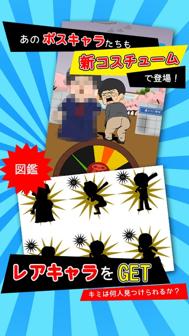 ケツバットでキャラクターをどれだけ吹っ飛ばすことができるかを競うゲームです。当たりの部分で針が止まるようにタイミングよくタップするだけの簡単操作で楽しめます。ポイントが貯まるとレベルが上がっていき、新たなステージやボスキャラが出現します。幅の狭いオレンジの部分で針を止められれば、クリティカルアウトとなってより多くのポイントが獲得できます。 出現したキャラをコレクションできる図鑑機能が搭載されているので、キャラを集めていくやりこみ要素もあります。