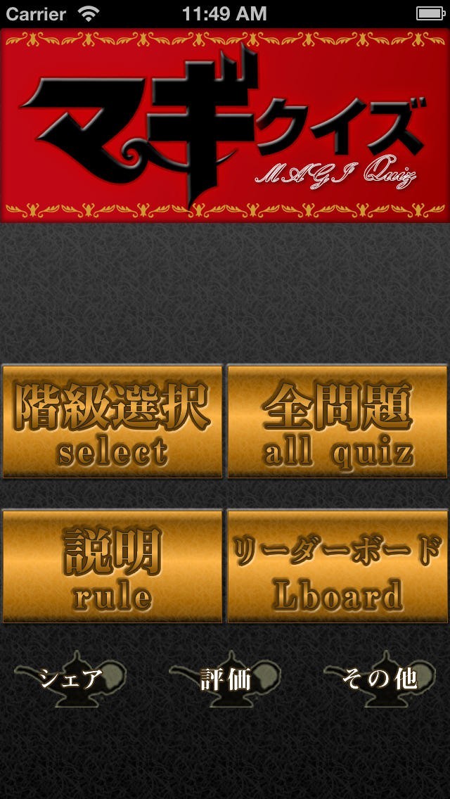 「マギクイズ」は、人気漫画マギにかんする知識をクイズで試せるアプリです。魔法の名前やキャラクターに関する問題が300以上、4択の中から正解を選びます。下級から上級まで、難易度によって3つの中から選択が可能、完全ランダム形式の出題も選べます。たくさんといて正解すればポイントをゲットでき、10問のうち8問正解すれば、特別なボーナスが加算。たまったポイントはスコアとして記録でき、全国のマギファンと知識の量をきそうことができます。