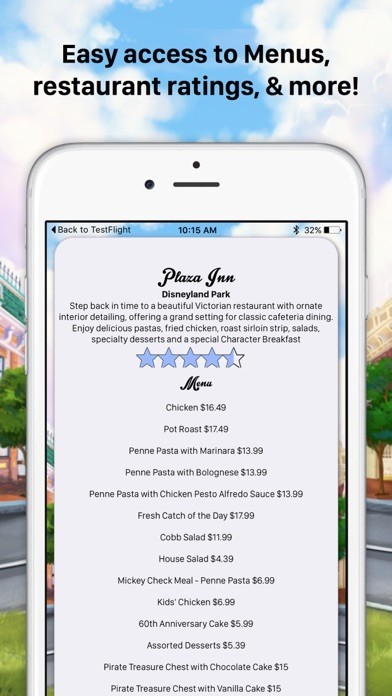 パーク内のレストランのメニューや価格、営業時間や最新の口コミ情報もチェックできるので、広いパーク内をうろうろせずに食べたいものや予算に合ったレストランをその場で探すことができます。