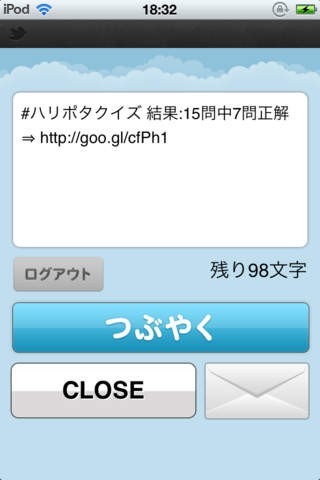 クイズ後には正解率を表示!結果をTwitterに呟いて友達と一緒に盛り上がれる!
