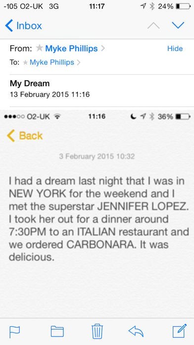 I had a dream last night that I was in Paris for the weekend and I met the superstar JENNIFER LOPEZ. I took her out for dinner to an Italianrestaurant around 7:30 and we ordered Lasagna. It was delicious.