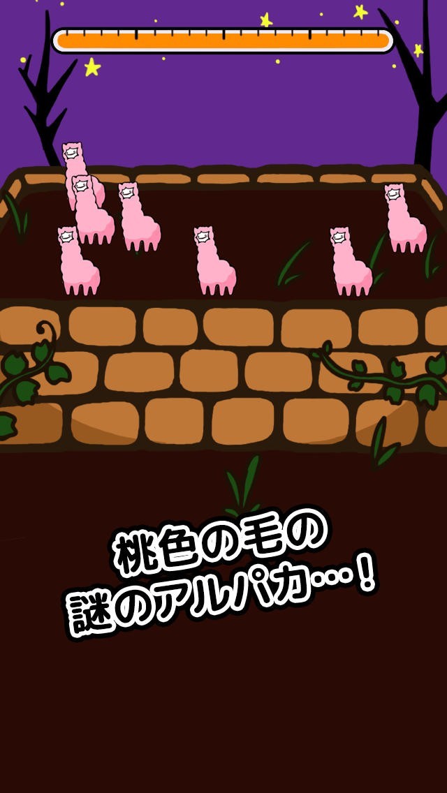 薬品を使って突然変異のアルパカを誕生させていくゲームです。5種類ある薬品から1つ選んで花壇に撒くとアルパカが生まれます。薬品によってアルパカが生まれるまでの時間が決まっているので、その間は放置しておいても大丈夫です。誕生したアルパカはタップで手に入れることができ、ポイントももらえます。スワイプだと一気に回収できます。ポイントを使うと最初から使える薬品以外も使えるようになります。 手に入れたアルパカはカルテに記載され、達成率が表示されます。