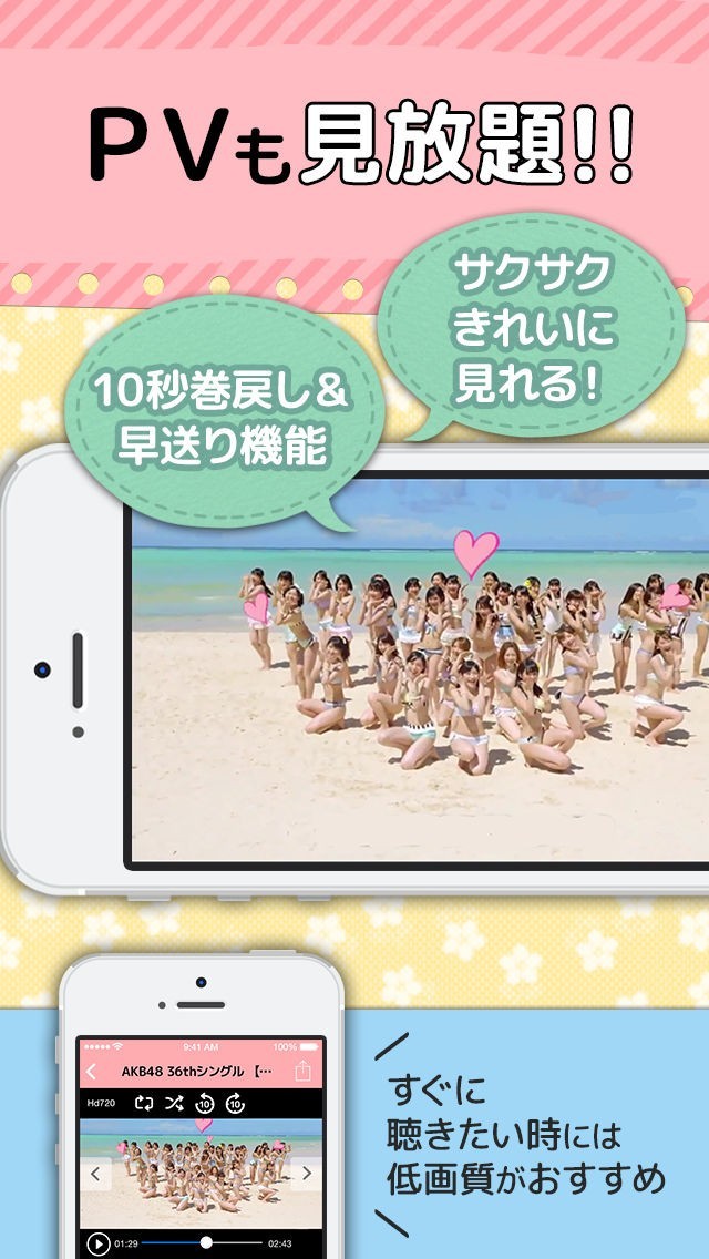 ポップでキュートなかわいいデザインと人気の曲が全部無料で聞き放題で、低画質再生にも対応しているから、いつでもどこでも場所を選ばず、友達と音楽を楽しむことができます。