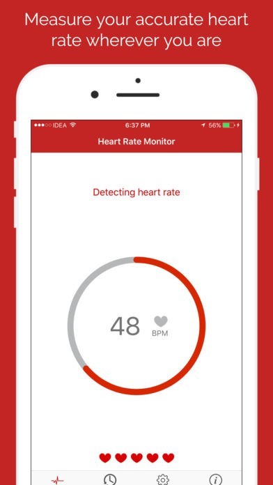 App Storeより引用今、あなたの脈拍を測定するために特別な心拍数モニターデバイスは必要ありません。カメラのフラッシュを使用してiPhoneを心拍数モニタに変え、いつでも心拍を測定できます。