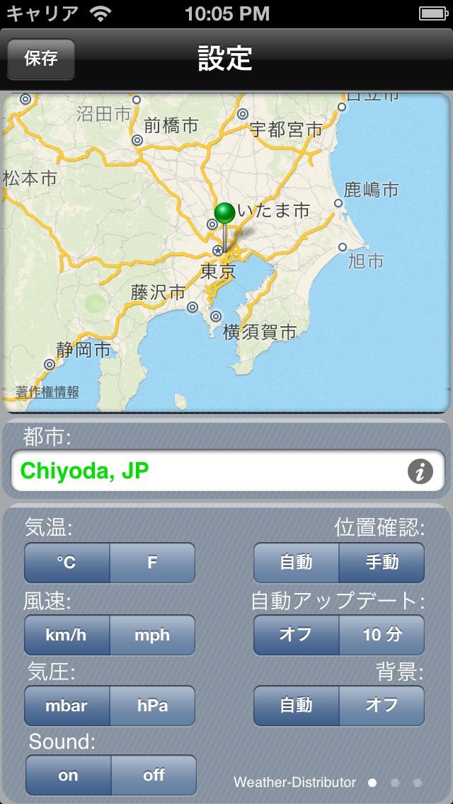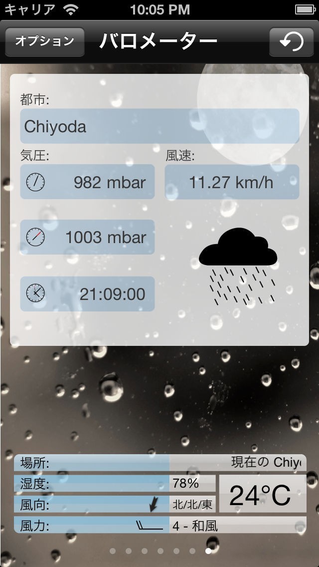 都市を設定して当日の気圧や湿度を確かめてみよう