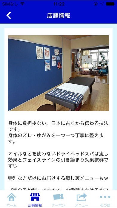 App Storeより引用本気で体を改善したい方に受けていただきたい整体を行っております。