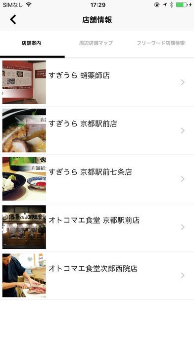 店舗の各種メニューを確認できる