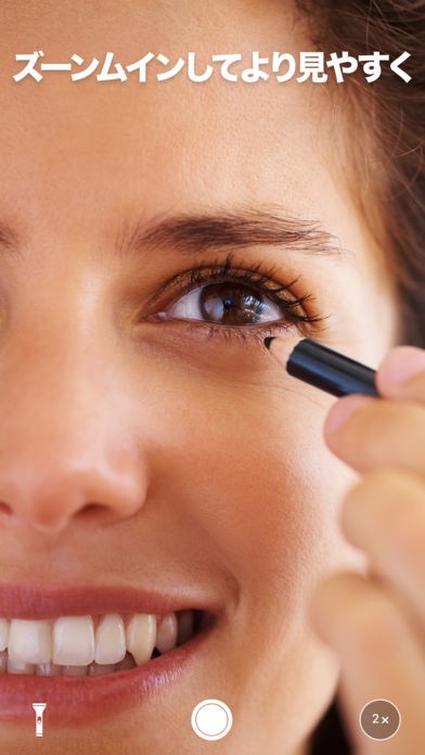 iPhoneのスクリーンを鏡として活用してどこでもメイク直しを行うことができます!食事をした後に歯に食べ物が挟まっていないかを確認したりすることもできるので身だしなみに気を遣っている女性の方に便利なアプリです。また、ズーム機能を活用すれば、小さな部分も見落とすことなくチェックが可能となります。顔の一部分だけを移せば、プライバシーを保護しながら自撮りをすることもできる優れものです。画面上に表示されているボタンを選択することで撮影や、ライトアップ、拡大表示が行えるためシンプルな操作感が魅力的です。大切な人とのお出かけやパーティーの必需品です。