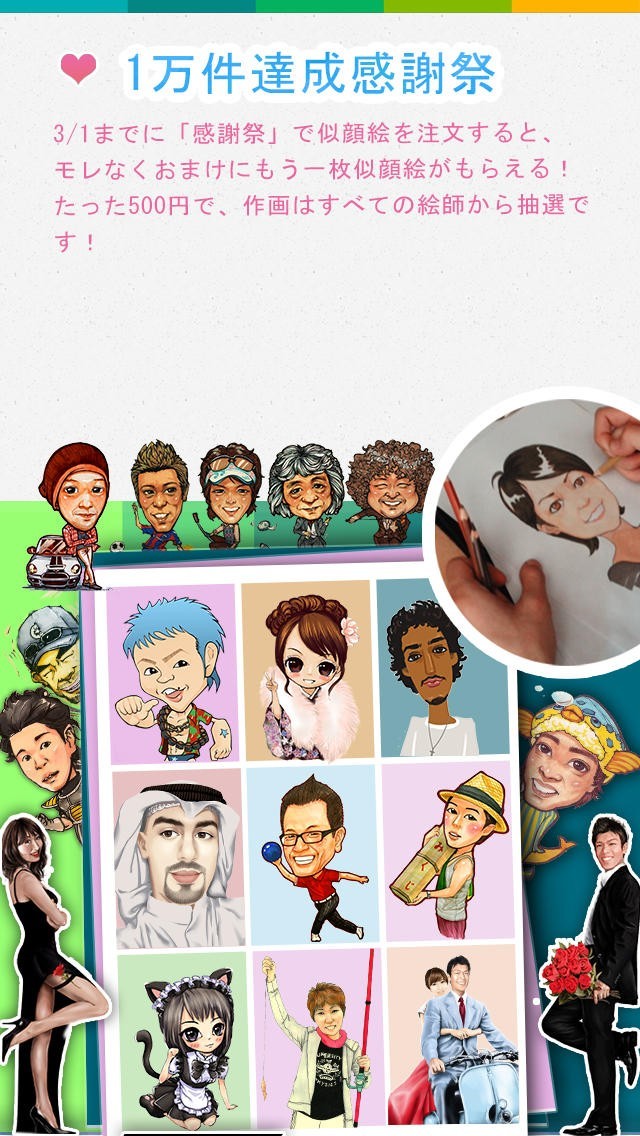 ・お買い得な似顔絵: 500円~特典満載