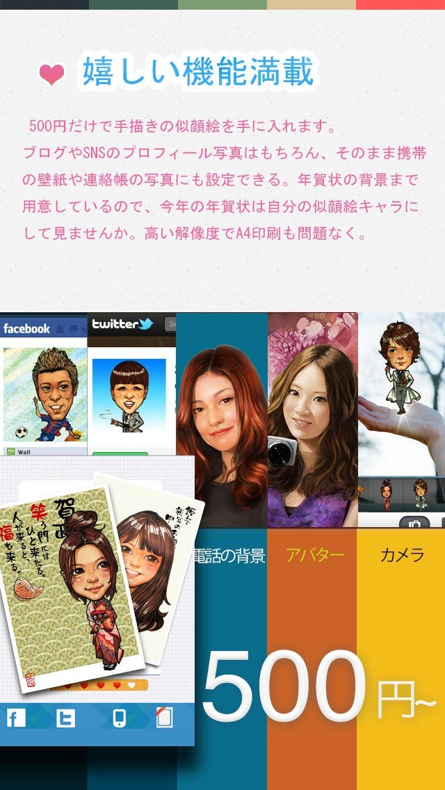 App Storeより引用Bookfacesサービスは2015年4月6日をもちまして、新規の似顔絵作画受付を終了させていただきました。