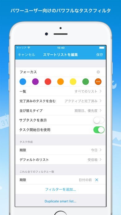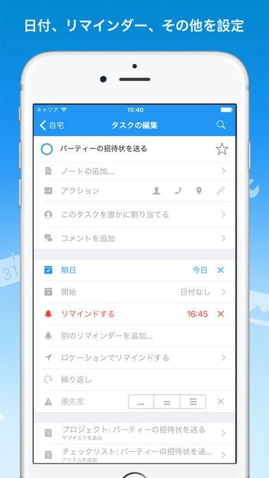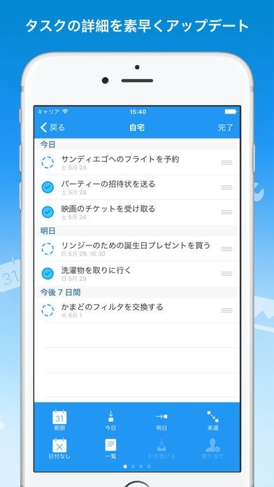 日付ごとにタスクを分けて表示してくれるから今日のタスクも一目で判る!