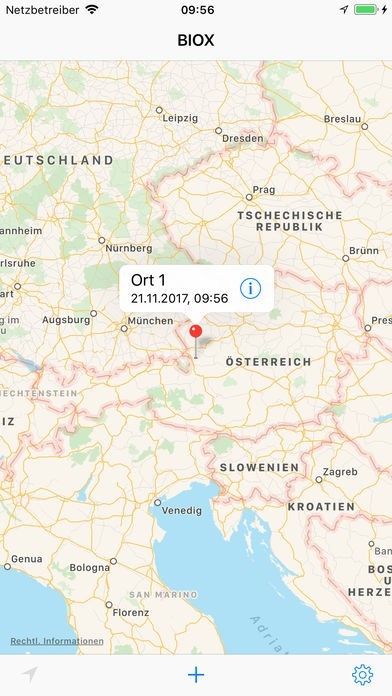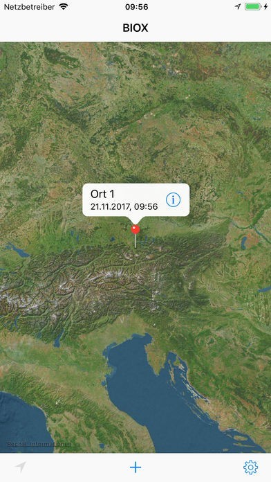 App Storeより引用Mit BIOX kann man den aktuellen Standort auf einer Karte markieren (zB.: Fundorte).