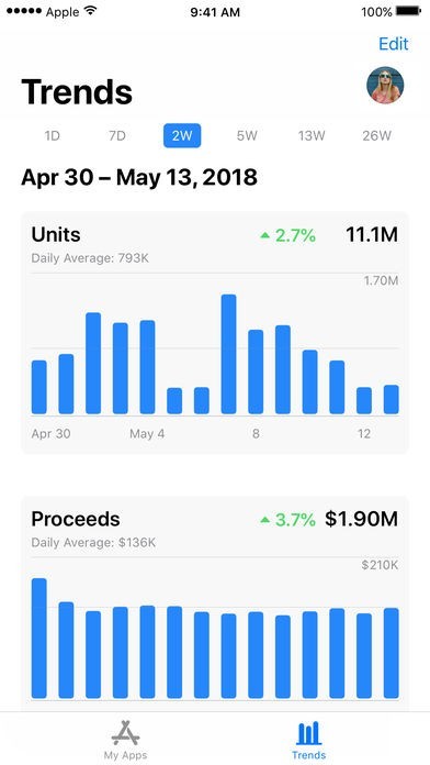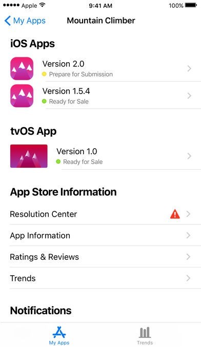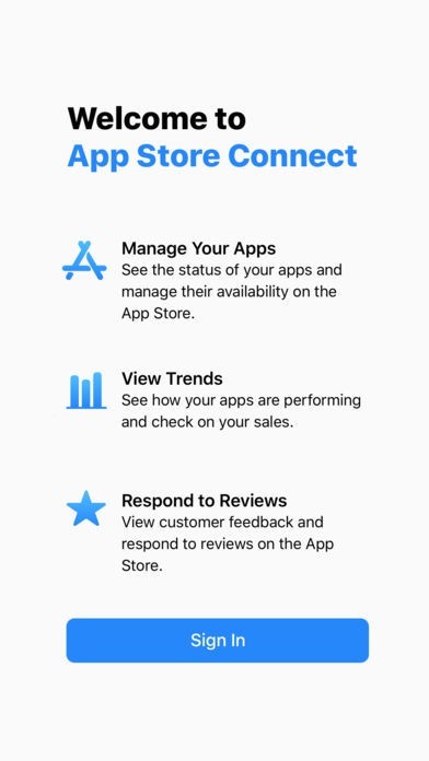 App Storeより引用App Store Connect for iOS helps developers manage their apps that are available in the App Store. Developers can use App Store Connect to monitor their latest trends, receive notification from user reviews, as well as respond to customer reviews immediately from their iPhone, iPad, and iPod touch.