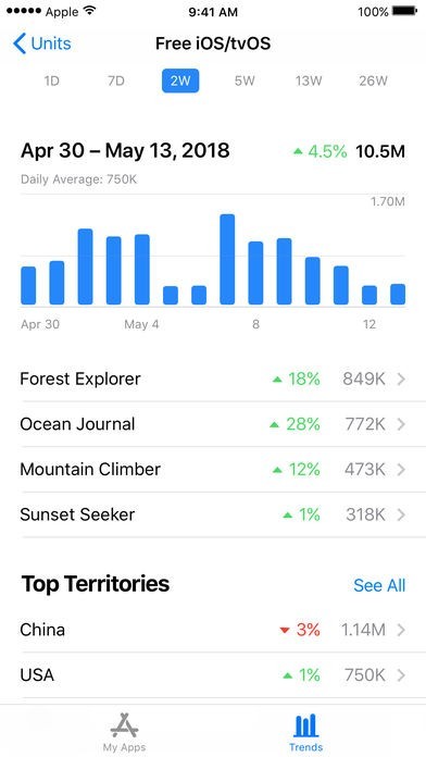 App Store Connectの順位推移表