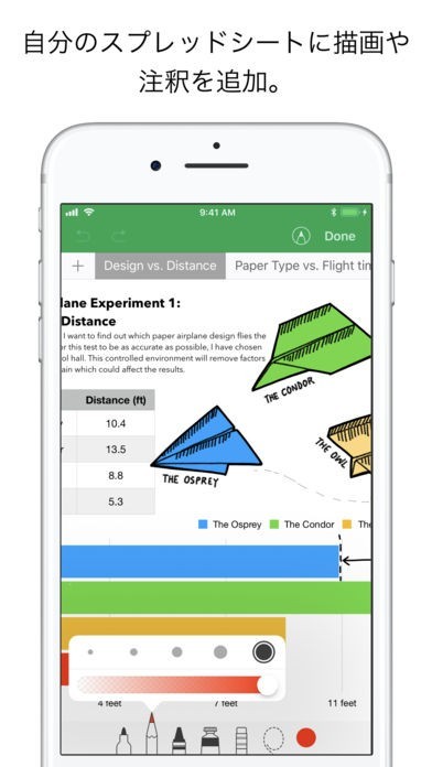 アップルが提供している表計算アプリです。30以上の豊富なデザインのテンプレートが用意されているので簡単にスプレッドシートを作成することができます。関数も250以上使うことができます。iCloudを使えば様々な端末から作業することができ、複数人での同時作業も可能になります。 セルをダブルタップすることでキーボードを表示できるので入力も簡単です。指先だけで全ての作業ができるように設計されているのでスマホでも使いやすいです。