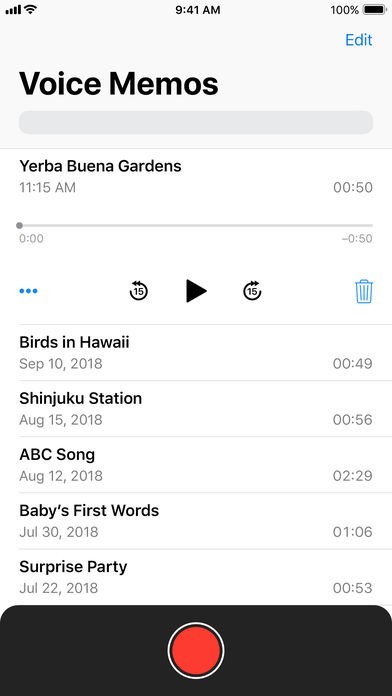 • iPhoneの3D Touchを使って、すばやく録音を開始したり、最近のボイスメモにアクセスしたりできます。