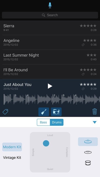 使いやすいインターフェイスによって、思いついた時にすぐに録音を開始できるため、音楽のアイディアを逃しません。仮想ドラマーとベースプレイヤーを用意しており、メロディにリズムをつけることができます。