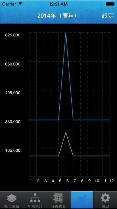 入力した給与をグラフ化して月ごとと年ごとに比較できる