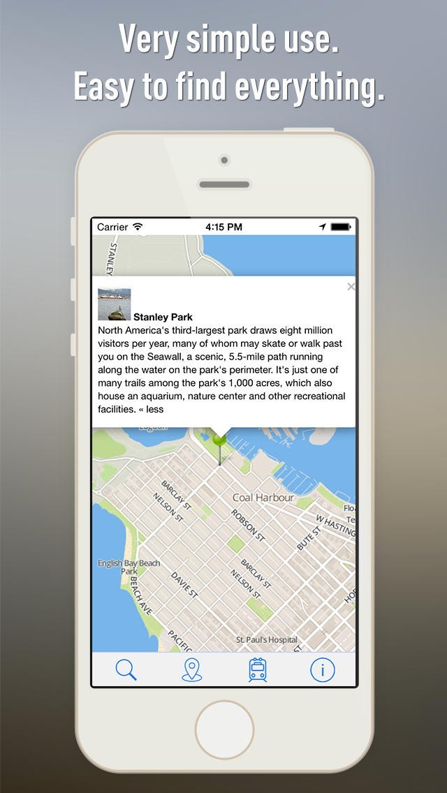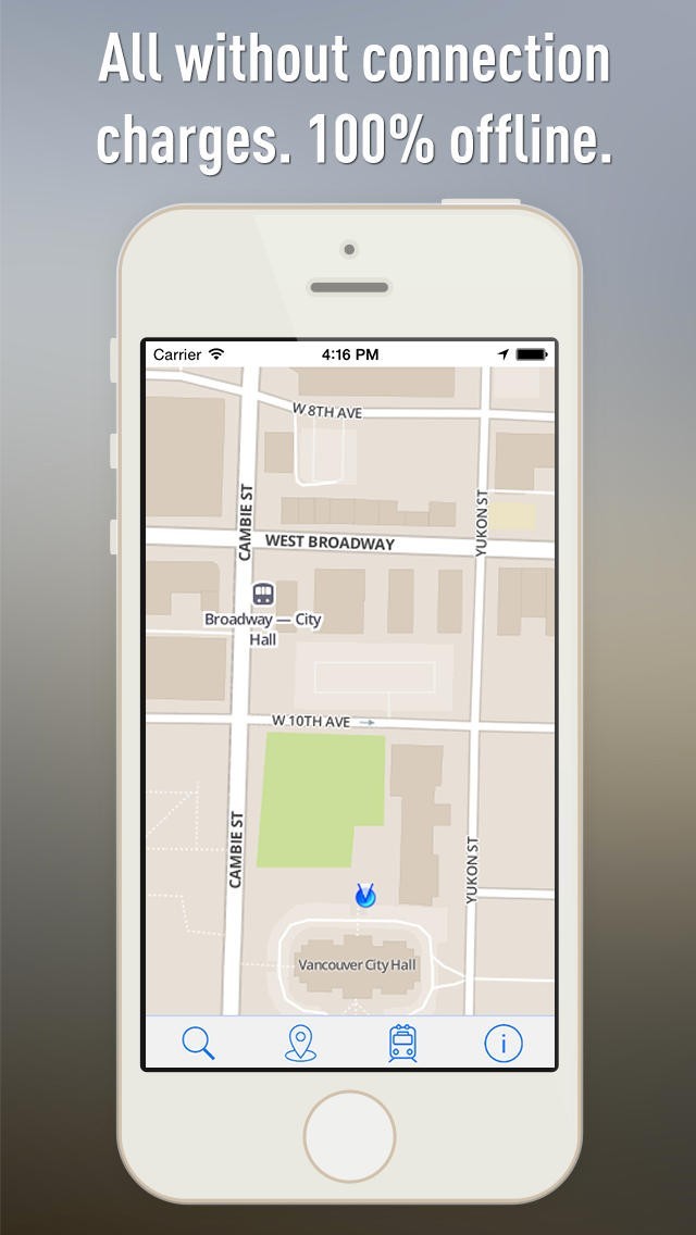 App Storeより引用「素晴らしいアプリ。 。初めての訪問者」 Happy83 によってのために非常に有用な、他の人々の何千ものと同じように、オフライン地図バンクーバー は、あなたが街を移動するために必要なすべての情報を提供します。行くべき場所、やる、公共交通機関に関する情報へのもの。すべての接続料金なしで。