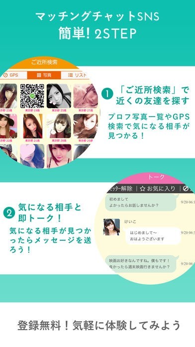 住んでいる地域や出身地等の条件から自分好みの利用者を検索出来るようになっています。リスト形式で相手の写真をチェックする事が可能なので、好きなユーザーも素早く把握していけますね。
