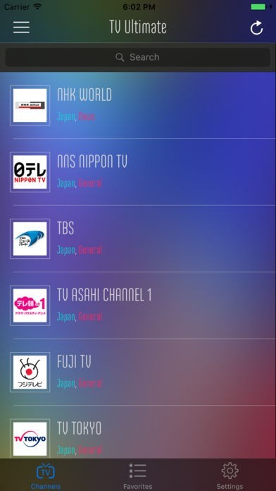 お気に入りのチャンネルリストを作成することができます。チャンネルは各国別にカテゴリ分けされているので探しているチャンネルをスピーディーに見つけることができます。
