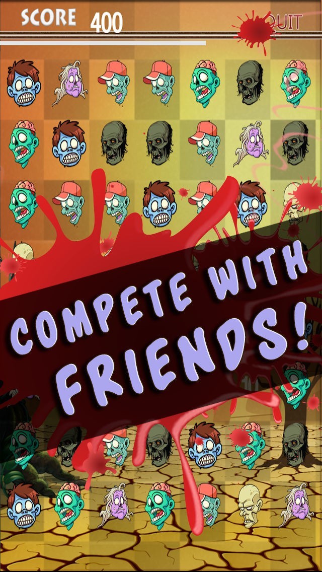 App Storeより引用Match 3 Zombie Destruction is a fast-paced 3-Match Game that requires speed, skill and cunning. Connect the Zombie faces to progress. May the best Zombie match win. Easy to learn but hard to master the Living Dead Hoards.