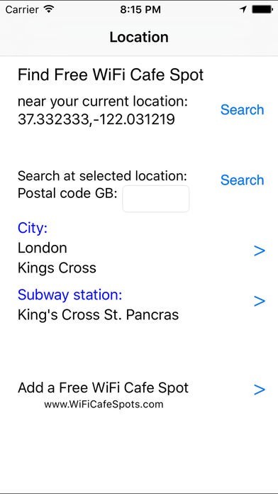 「London Free WiFi」は、イギリス・ロンドン内の無料WiFiスポットをインターネット接続なしで検索できるアプリです。もちろんGPS検索で付近のWiFiスポットを検索することも可能です。観光地へ移動中にネットを使いたいときは、地下鉄の駅付近を検索することも可能です。
