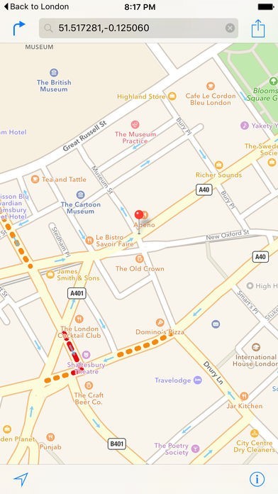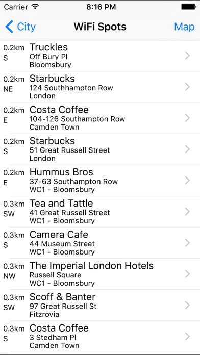 ネット接続無しで見られるロンドンの地図に無料WiFiスポットが表示されるため、迷わずに行くことができます。目的地までの距離もわかるので、近いスポットをすぐに判断できます。