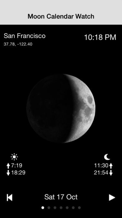App Storeより引用Moon Calendar Watch shows Moon Phases and times of Sunrise, Sunset, Moonrise and Moonset.