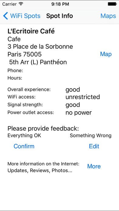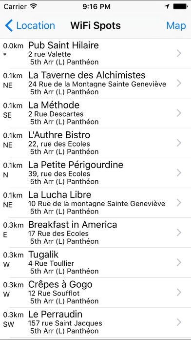 地図を表示して、Wi-Fiスポットの場所を調べることができます。大きな通りに面しているか鉄道の駅から行きやすい所にあるのかなどを把握することができるので、とても便利です。