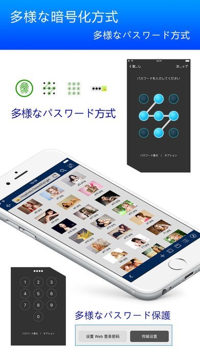 1. 数字、キャラクタ、指紋及び図案など多種多様な方法で、お気に入りの秘密プライベートファイルを保護し、あなたの個人情報の保護に努めます。