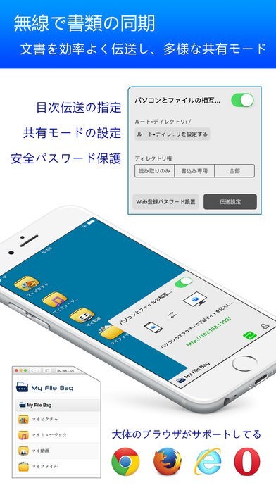 App Storeより引用友好的な、視覚作動すること容易なファイル伝送ツール、伝統的なWindows 操作システムのインターフェース・スタイルを採用し、優しさを十分に感じる。無線LANでファイルの転送と共有など機能を、便利かつ効率良く行い、モバイルデバイスをミニパソコンのように使用できる.