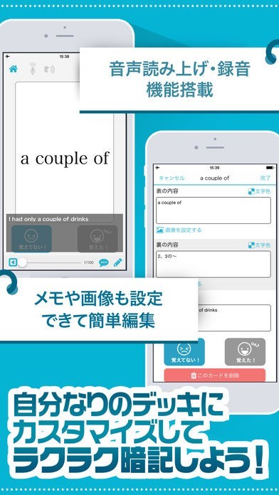 覚えていないカードのみを再生することができるので、最初に覚えられなかった単語を集中的に反復学習できます。