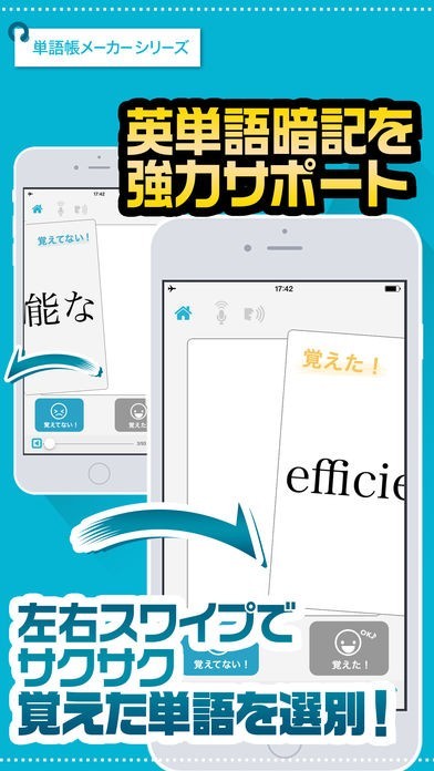 アプリを立ち上げれば、すぐに単語学習を行うことが出来るので、通勤・通学などの短い移動時間でも効率的に覚える事が出来ます。また、夜寝る前のちょっとした時間を活用し、カードを使って一日の復習に充てる事も出来ます!