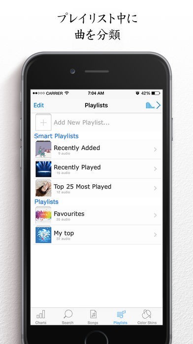 お気に入りの音楽をプレイリストにまとめて管理する事が可能!