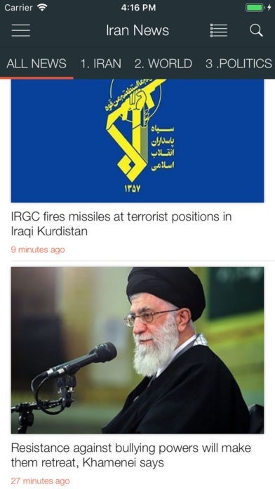 Save time and space – no need to have separate apps for all Iran news. Now you’ll have all the latest news and breaking news in nine different categories: Iran, World, Business, Politics, Health, Science, Tech, Sports and Entertainment.