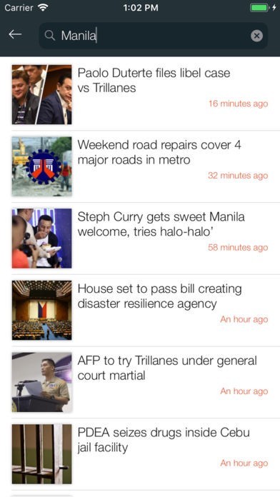 * Search option on the top bar to find latest filipino headlines as per your interest.